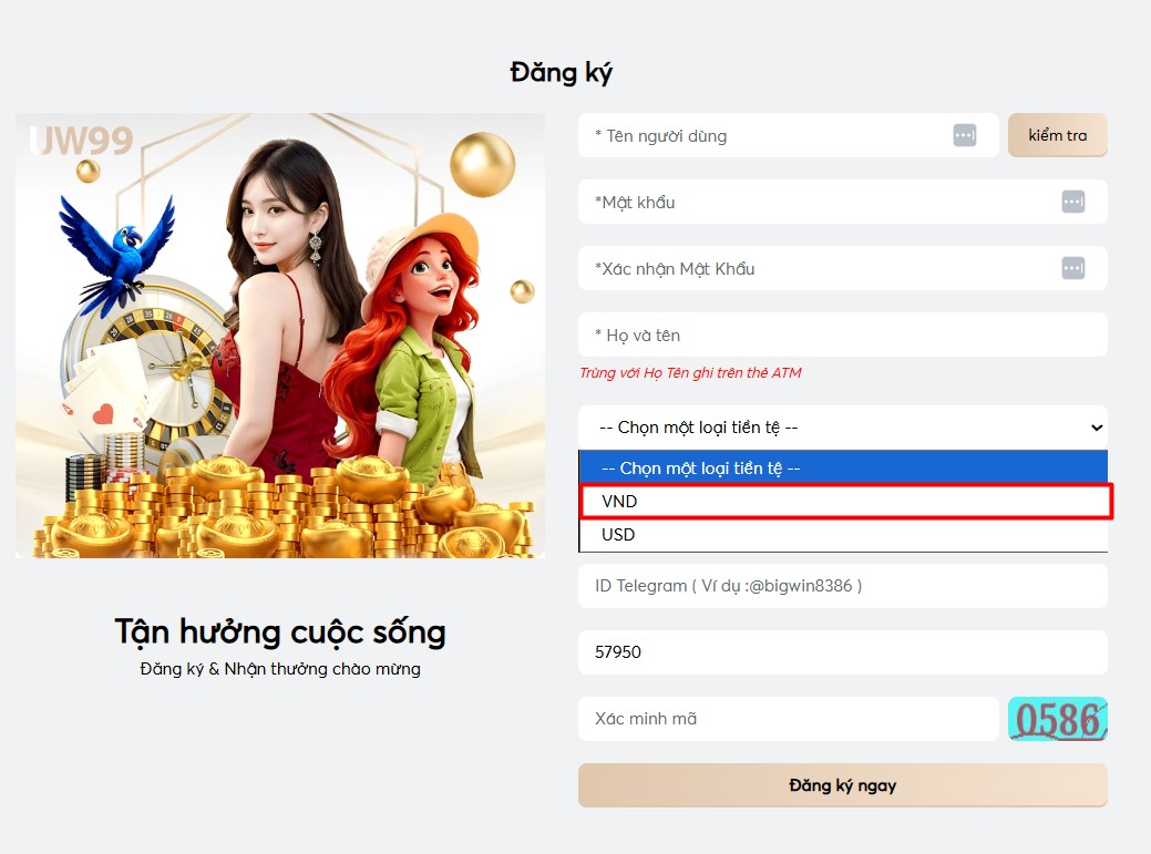 Bước 3: Sau khi điền xong thông tin thì chọn "Đăng ký ngay". Hoàn thành việc đăng ký tài khoản UW99.