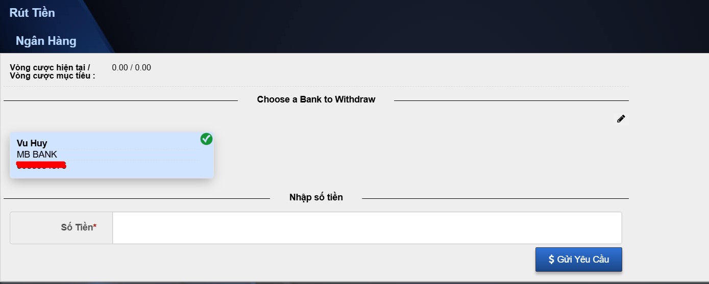 Lưu ý: Chỉ khi đạt đủ vòng cược yêu cầu thì quý khách mới có thể thực hiện lệnh rút tiền.